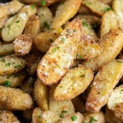 Roast until the potatoes are tender enough to easily be pierced with a fork, golden brown, and starting to shrivel slightly, flipping halfway through, 25 to 30 minutes total. Meanwhile, finely chop until you have 2 tablespoons fresh parsley leaves.